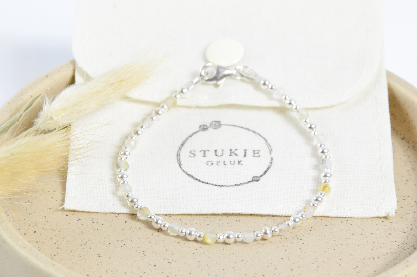 Steen: Citrien facet geslepen 3 mm, zilveren/gouden kralen 2 en 3 mm Edelmetaal: 925 sterling zilver of gold filled