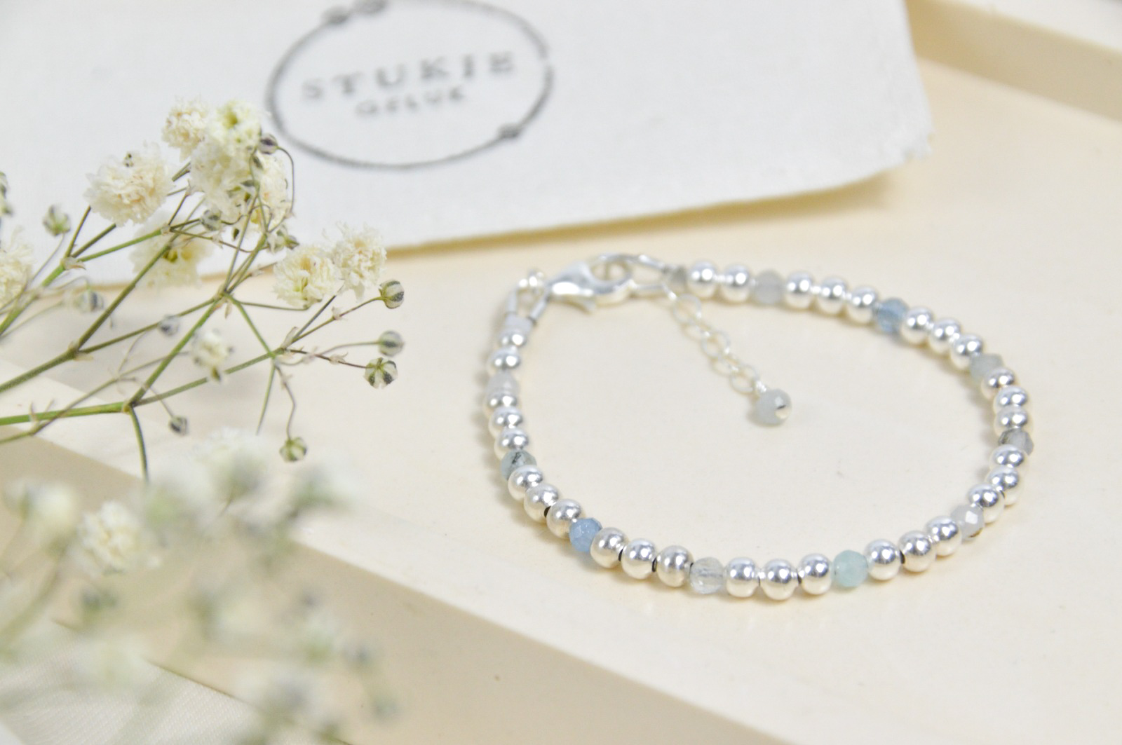 Steen: Aquamarijn facet geslepen 3 mm Edelmetaal: 925 sterling zilver of gold filled
