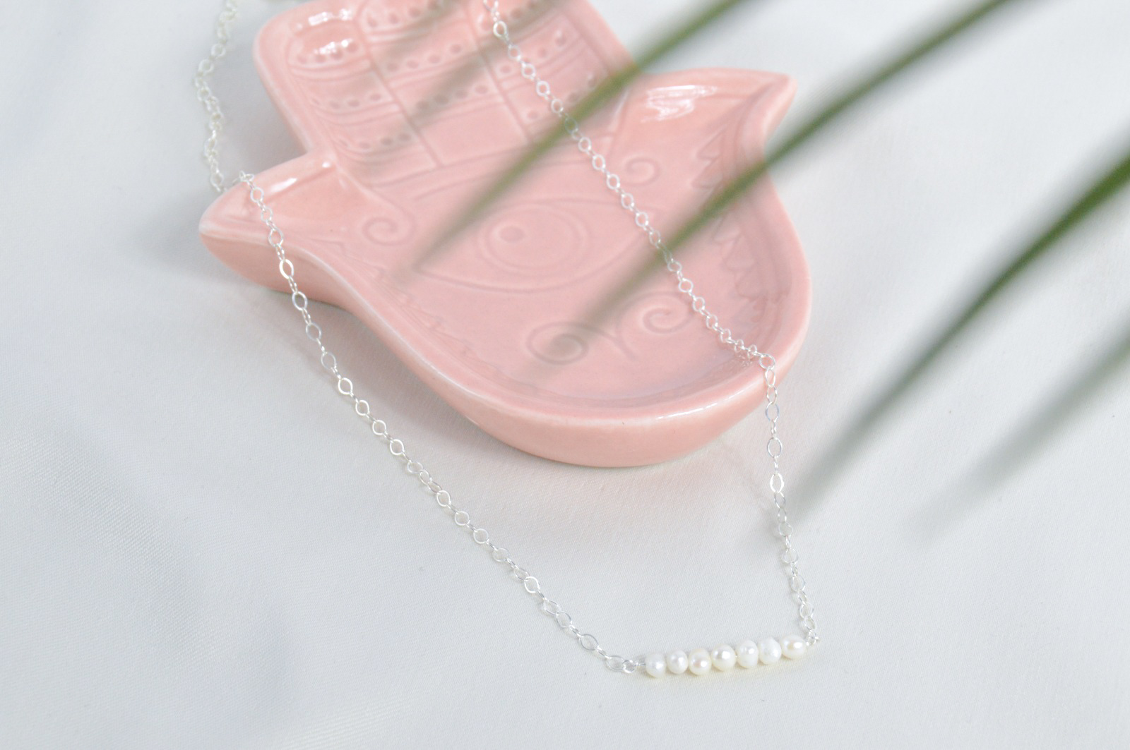 Steen: Zoetwaterparel ± 4 mm Edelmetaal: 925 sterling zilver of gold filled Lengte ketting: 40 cm + 5 cm verlengketting of 45 cm + 5 cm verlengketting
