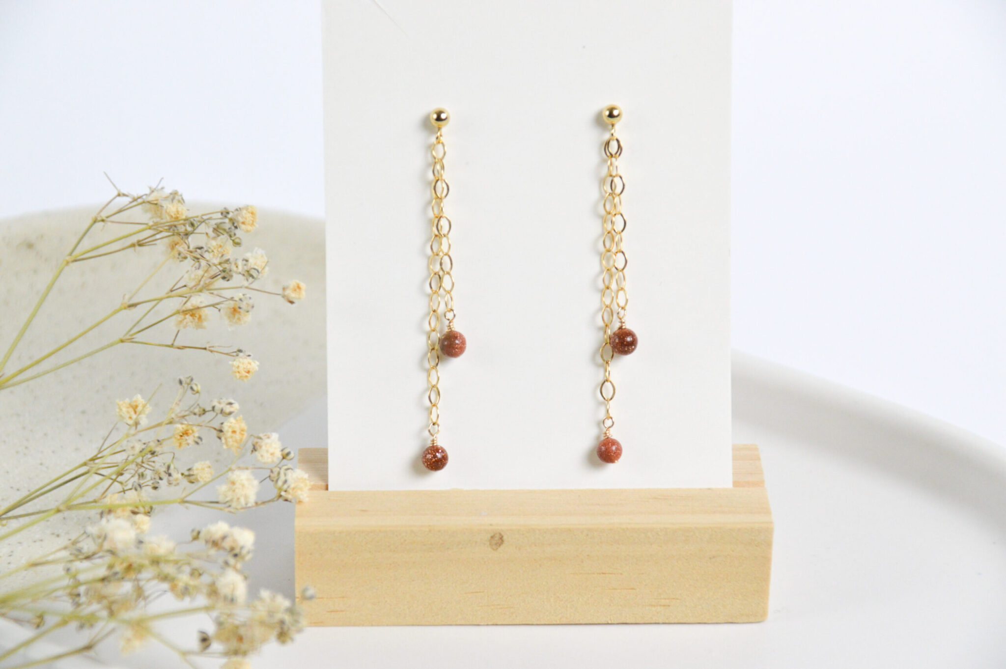 Steen: Goudsteen 4 mm Edelmetaal: 925 sterling zilver of gold filled Oorbel grootte: achterkant 6 cm, voorkant 4 cm lang