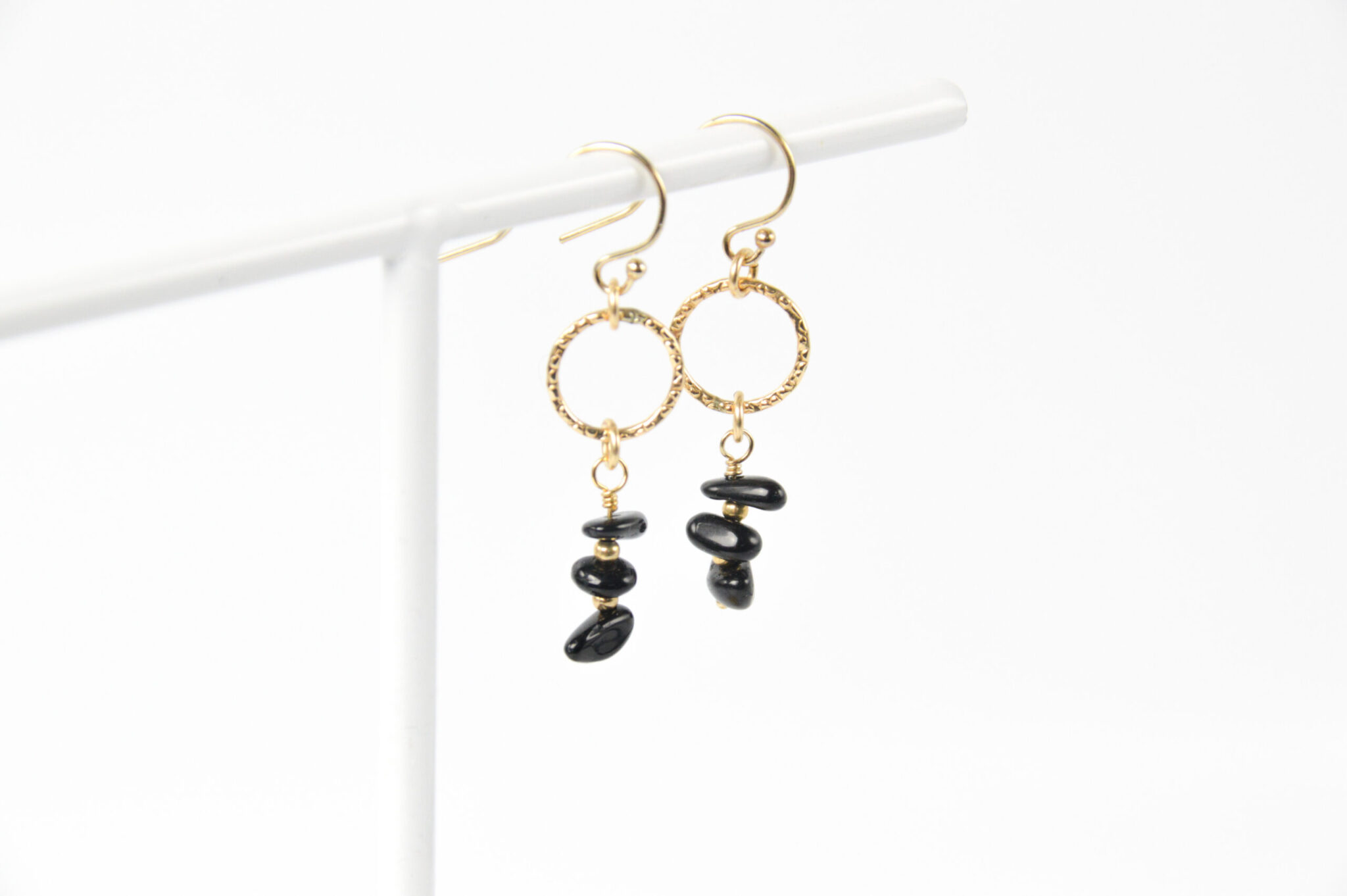 Steen: Onyx split 3-5 mm Edelmetaal: 925 sterling zilver of gold filled Oorbel grootte: 4 cm lang