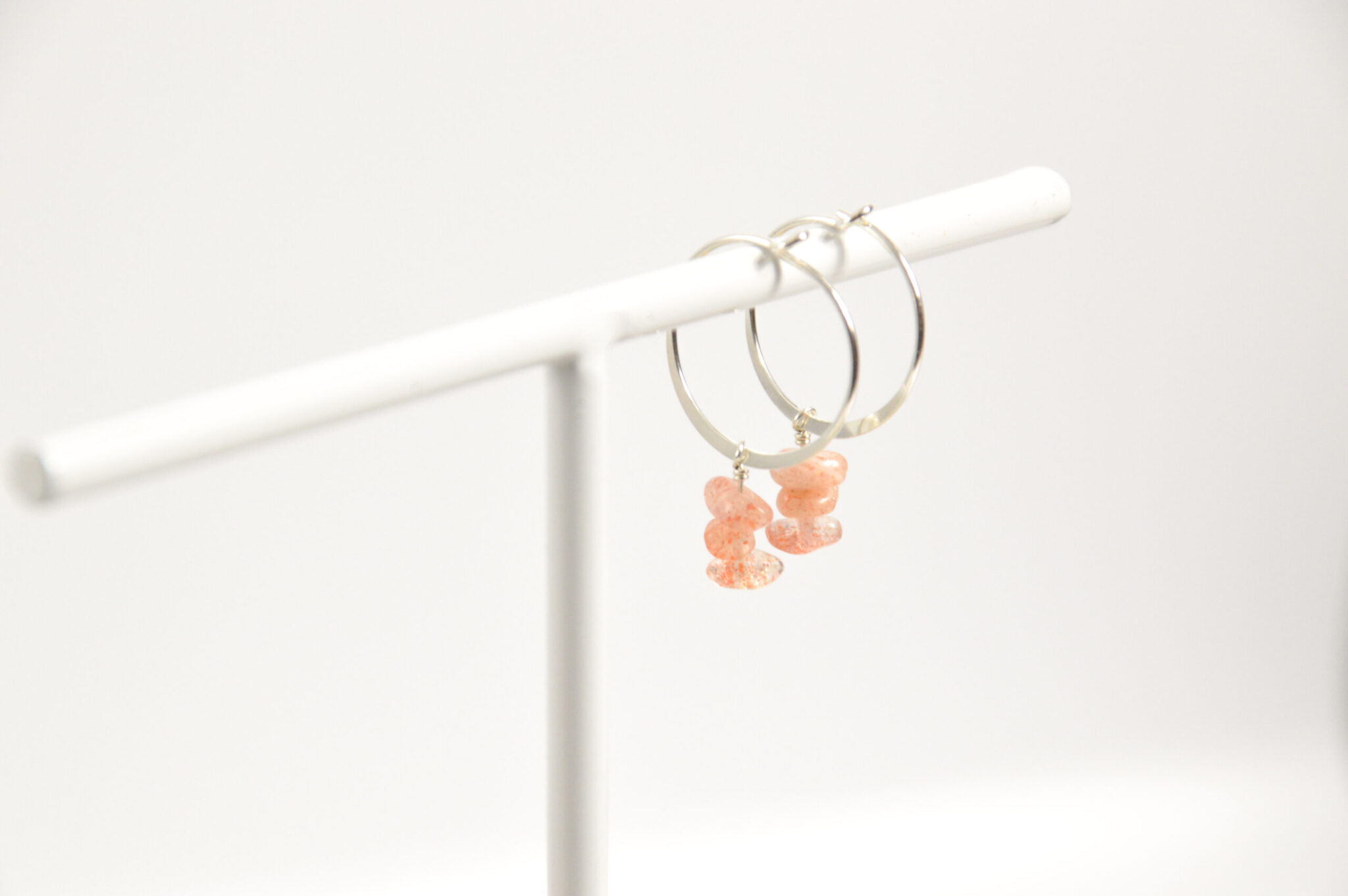 Steen: Zonnesteen split 4×3 mm Edelmetaal: 925 sterling zilver of gold filled Oorbel grootte: 15 of 22 mm
